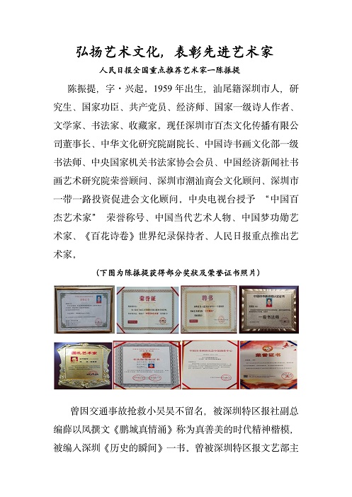 人民日报:全国重点推荐艺术家―陈振提