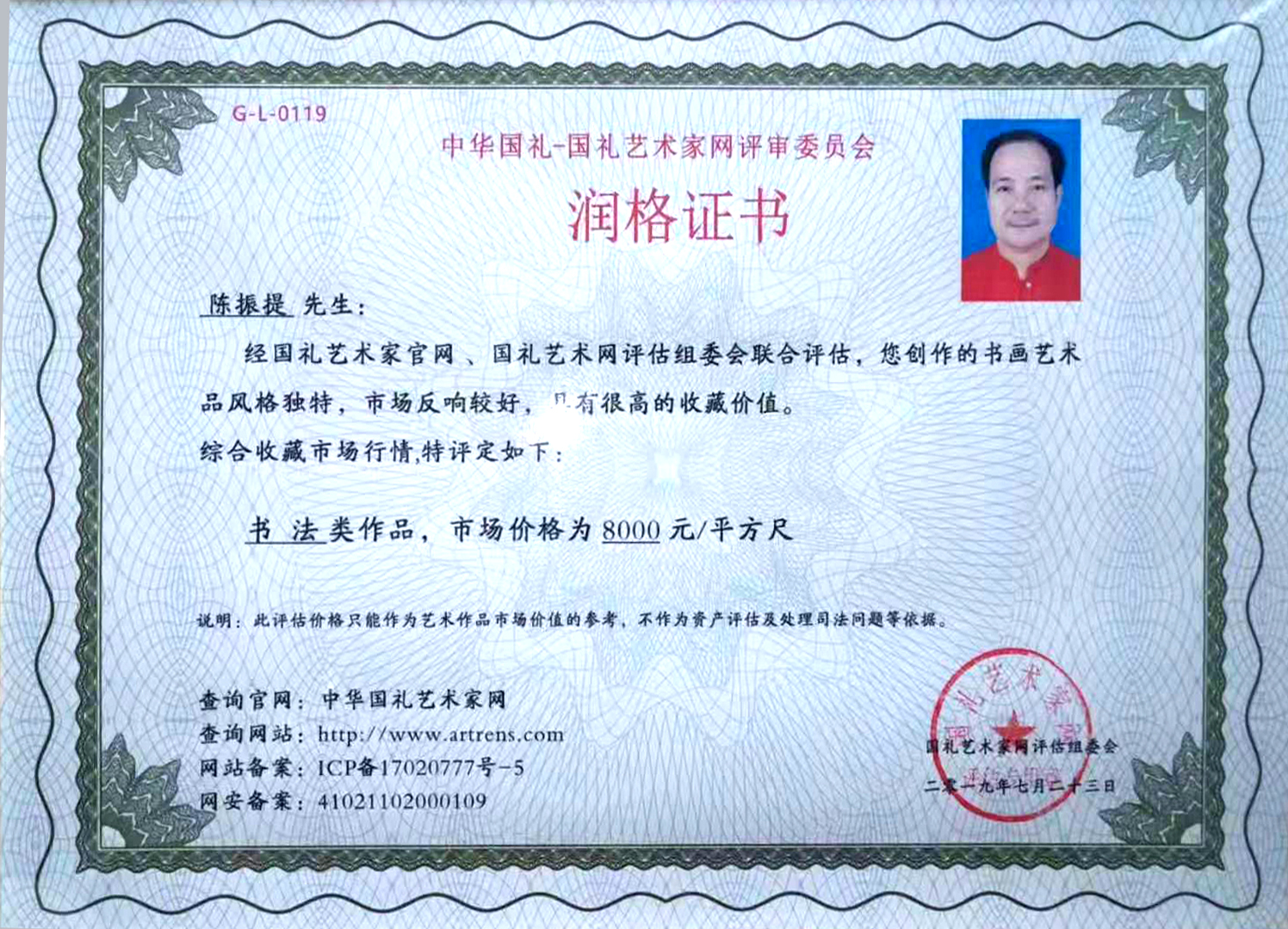 人民日报:全国重点推荐艺术家―陈振提