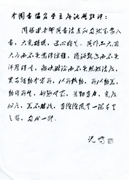 > 中国书法家协会名誉主席沈鹏点评
